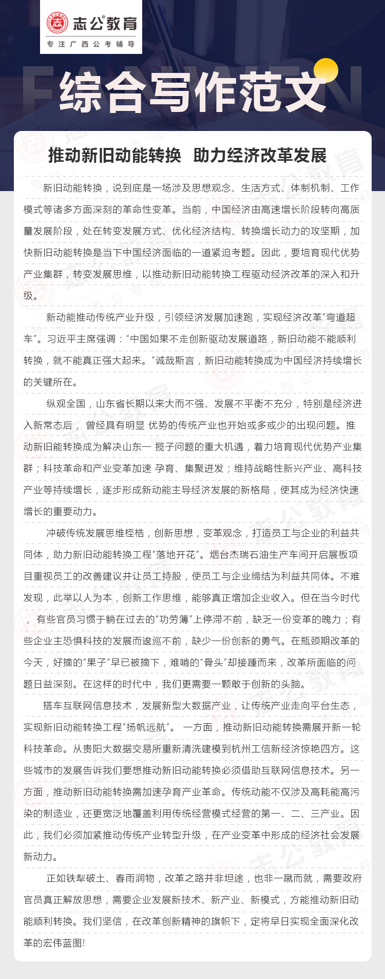 綜合寫(xiě)作范文二:推動(dòng)新舊動(dòng)能轉(zhuǎn)換 助力經(jīng)濟(jì)改革發(fā)展