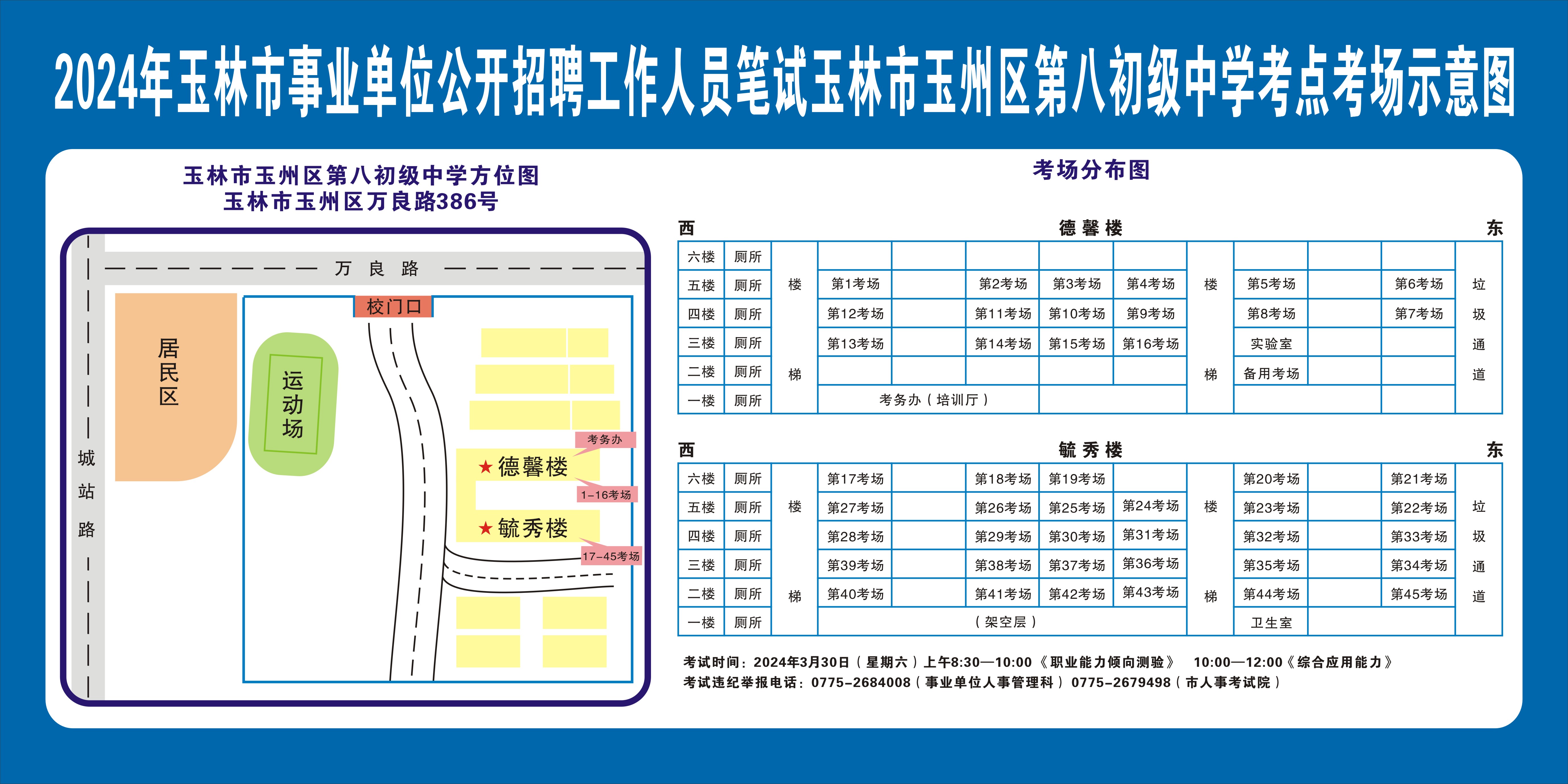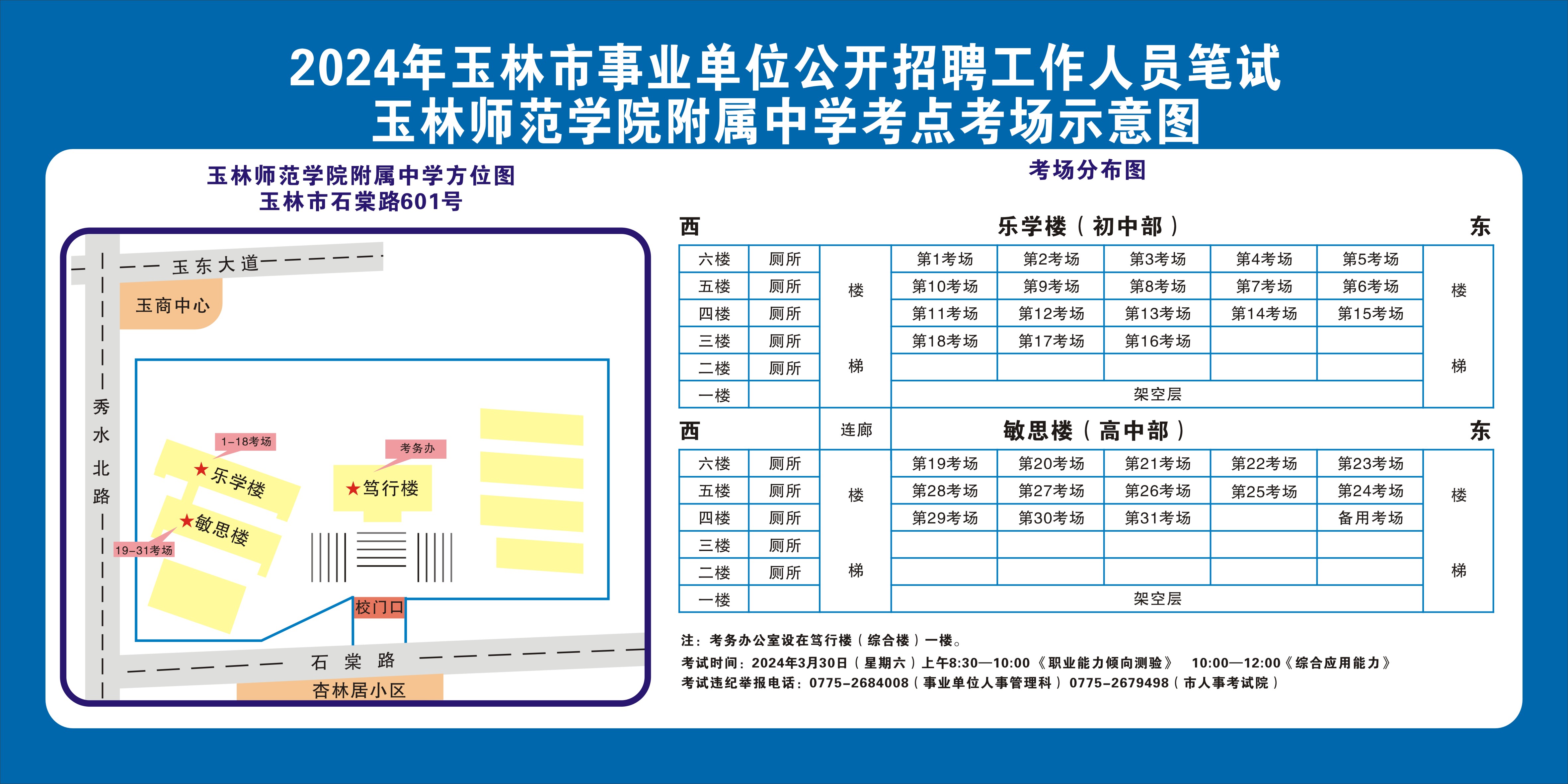 請(qǐng)考生注意查看“考點(diǎn)考場(chǎng)示意圖”,提前熟悉考點(diǎn)地址、交通路線和考場(chǎng)分布情況。除考試當(dāng)天考生可以進(jìn)入考點(diǎn)外,考生不得提前進(jìn)入考點(diǎn)查看考場(chǎng)(學(xué)校將在大門處擺放考場(chǎng)分布示意圖),13個(gè)考點(diǎn)的考場(chǎng)布置情況如下: