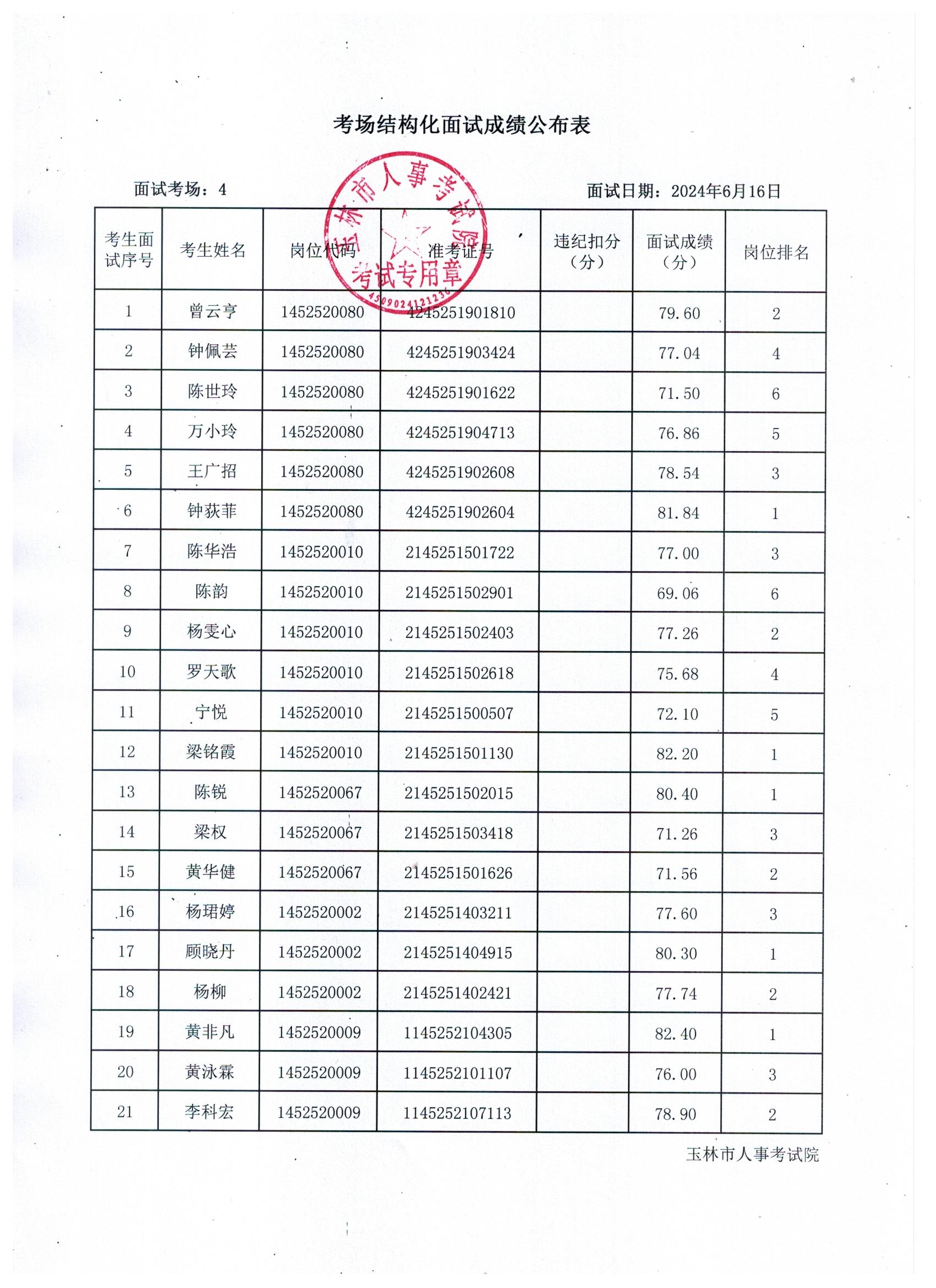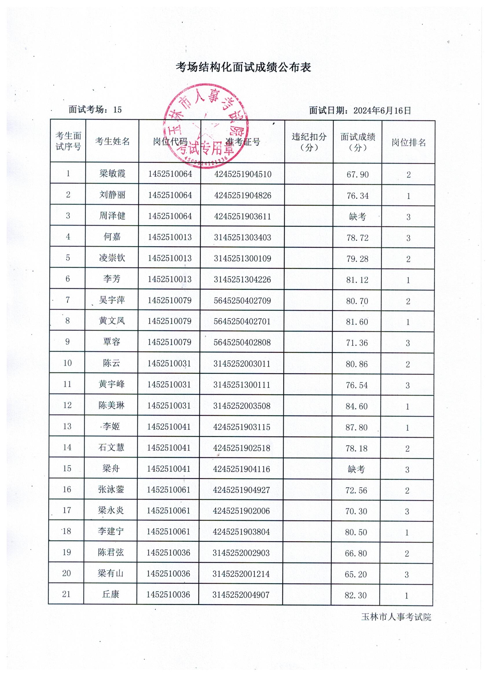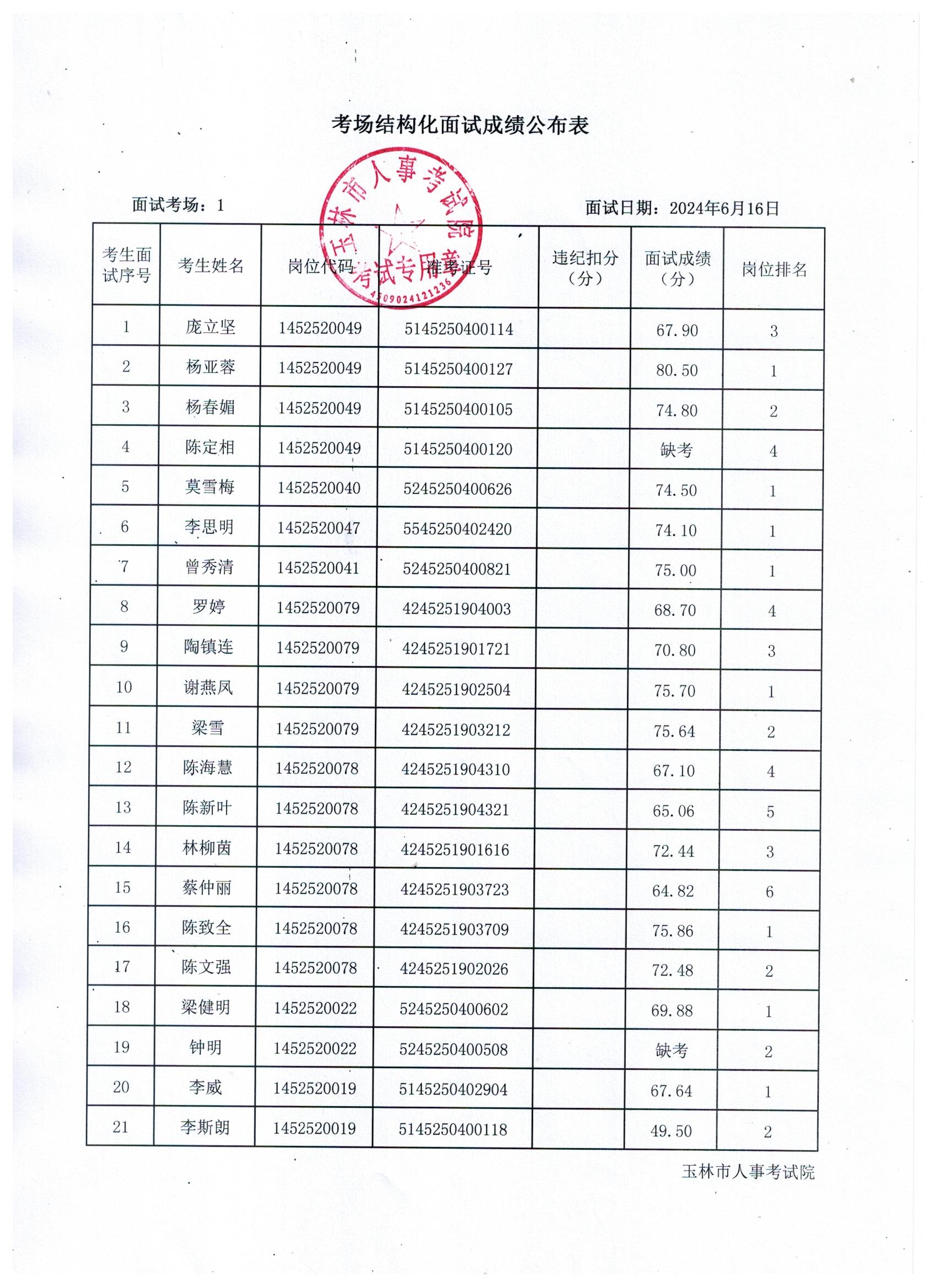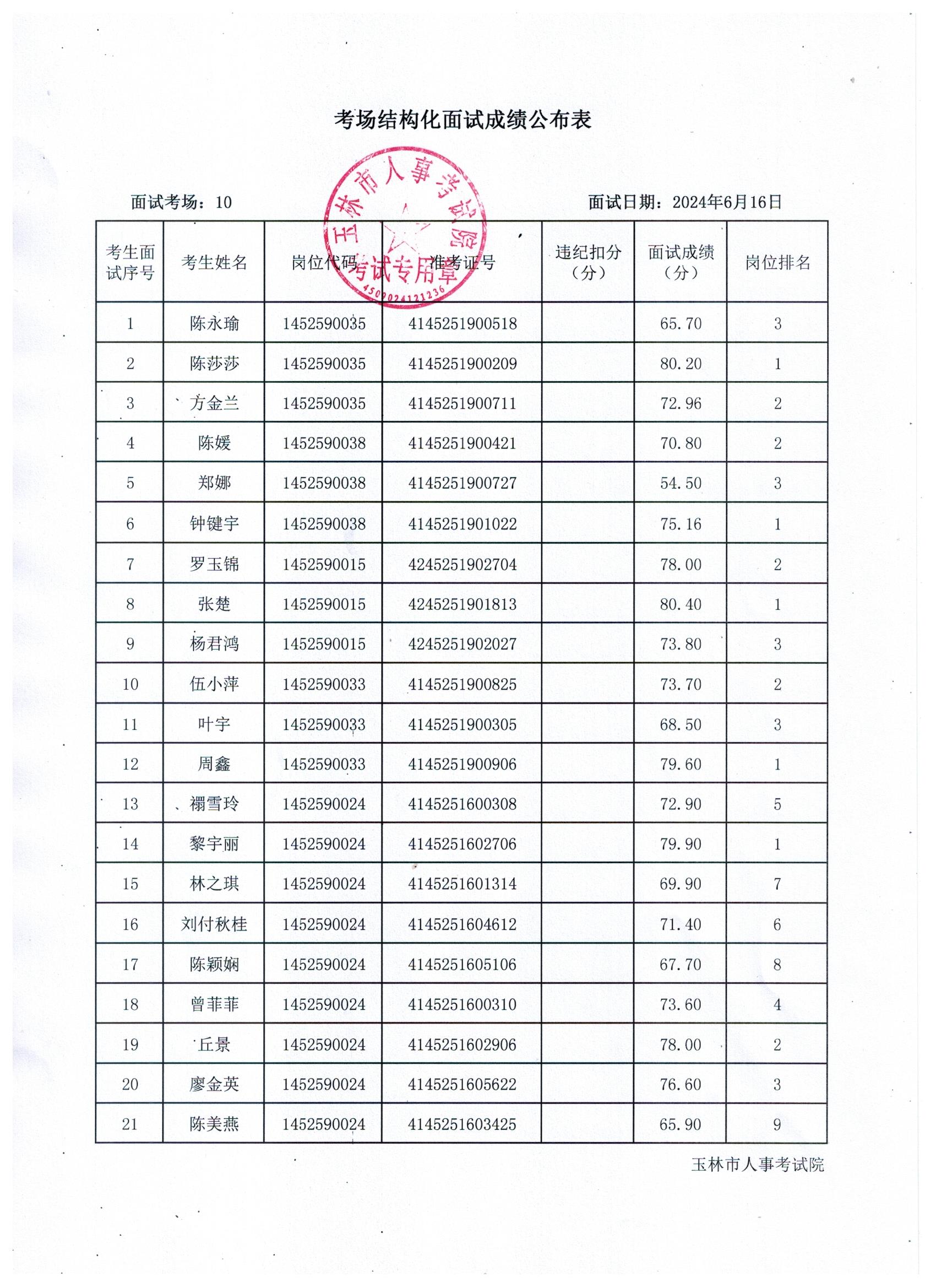 原文標(biāo)題:2024年玉林市直(含玉州區(qū)、福綿區(qū)、玉東新區(qū))事業(yè)單位公開招聘人員面試成績公布(6月16日)