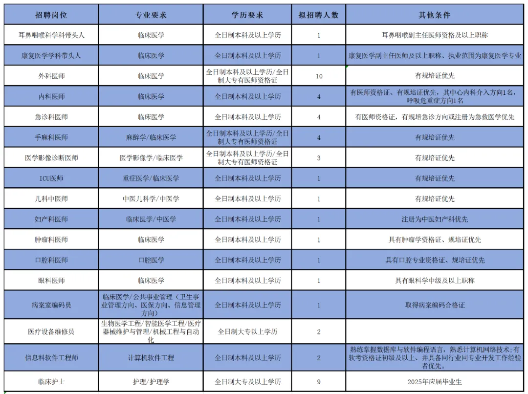 招聘對象:1、應(yīng)屆畢業(yè)生;2、規(guī)培生;3、已取得執(zhí)業(yè)資格的在崗人員