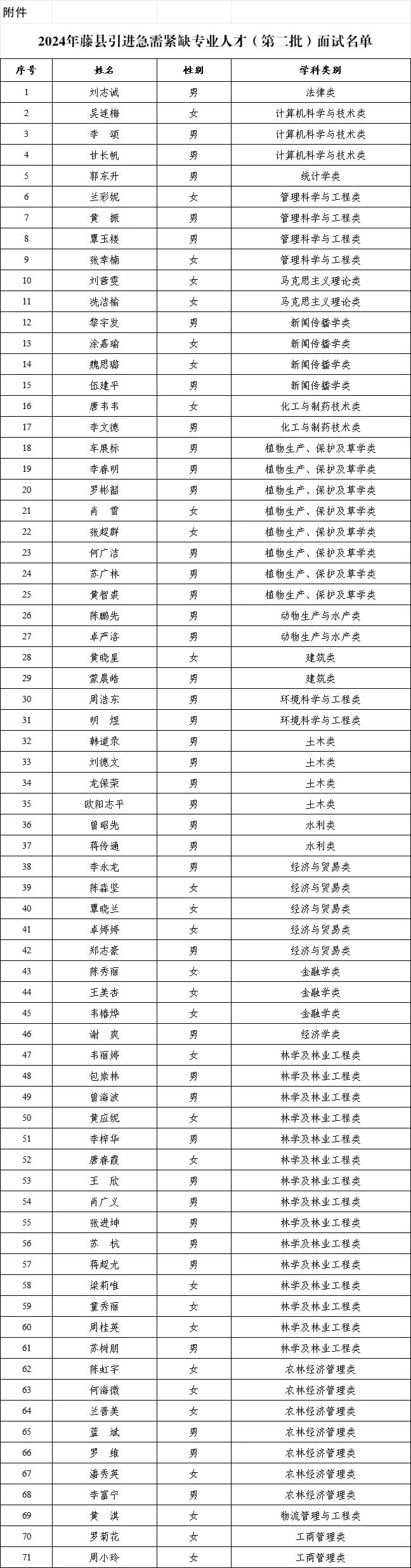 附件:2024年藤縣引進(jìn)急需緊缺專業(yè)人才(第二批)面試名單
