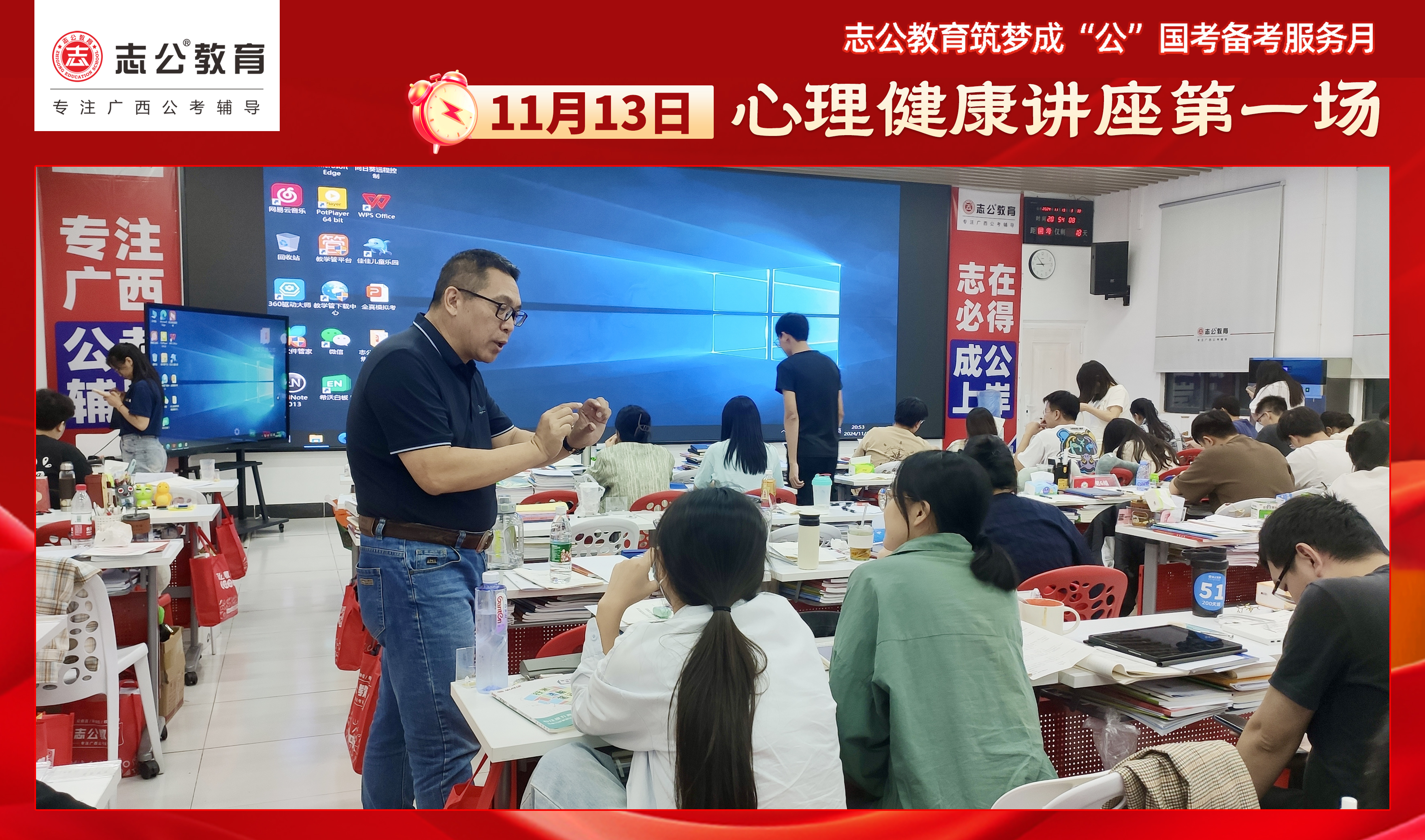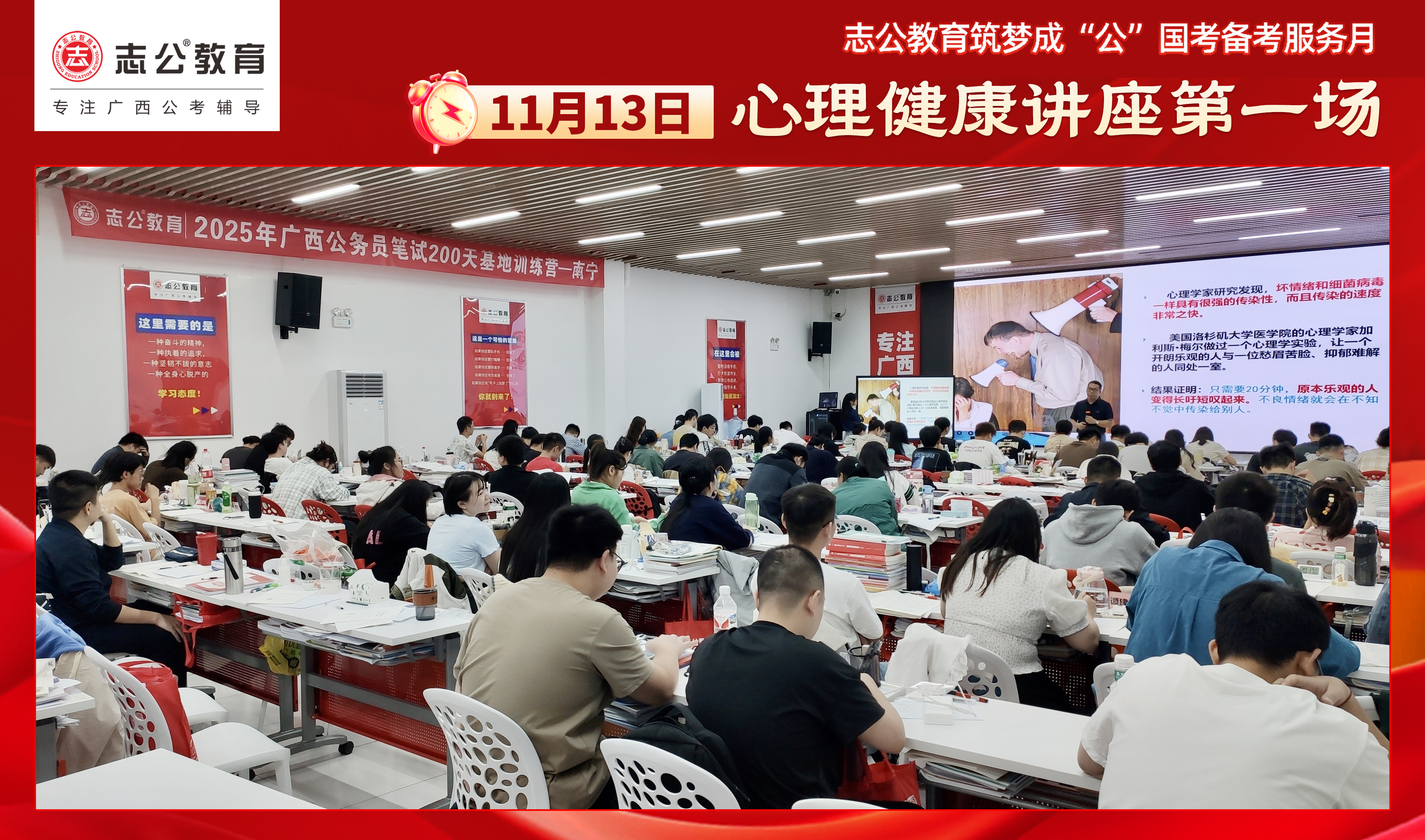 親愛的考生們,不要讓壓力成為你追夢途中的絆腳石。在志公教育基地班,你將學(xué)會如何在國考的征程中保持從容,如何在壓力下穩(wěn)步前行。且行且看且從容,讓我們一起向著國考的勝利邁進!第一場心理講座已結(jié)束,第二場心理講座將在11月17日舉行,期待大家以更從容自信的姿態(tài)應(yīng)對即將到來的公務(wù)員考試,加油!