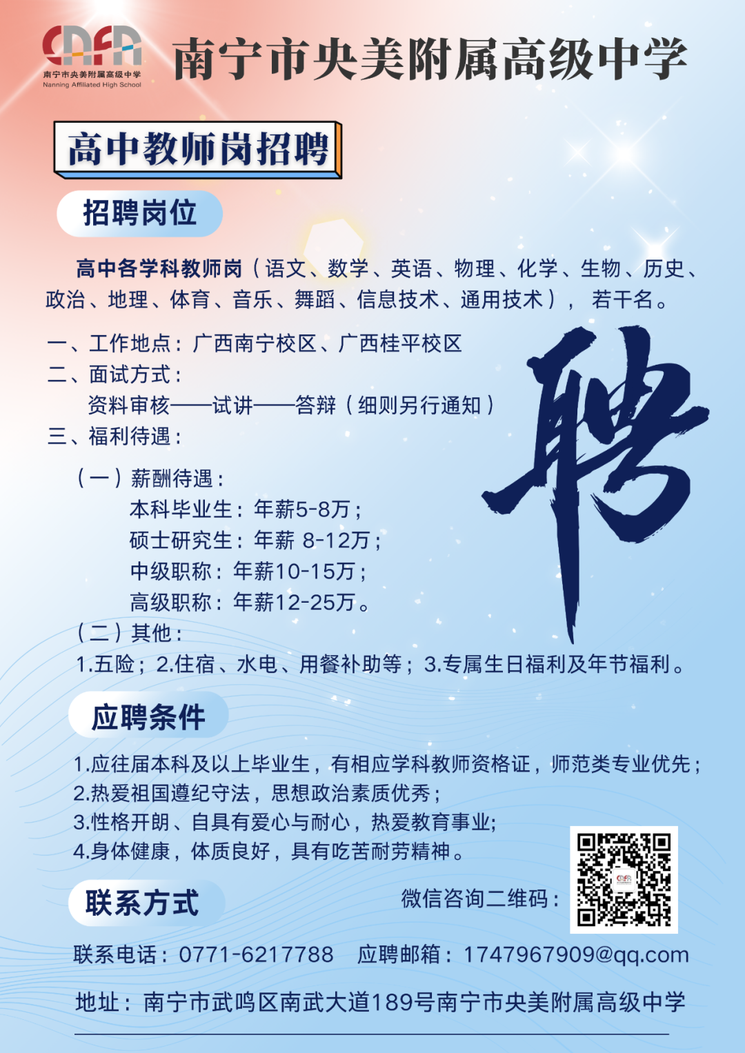 2025南寧市央美附屬高級(jí)中學(xué)春季學(xué)期招聘高中教師