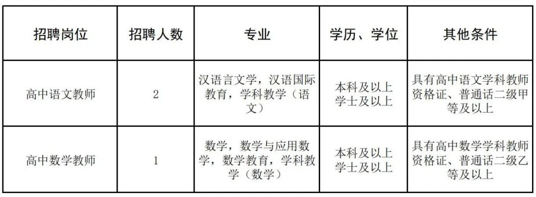 根據(jù)發(fā)展需要,學校擬招聘高中語文、高中數(shù)學頂崗教師共3人,具體招聘信息如下: