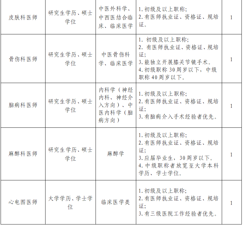 (四)醫(yī)師崗位原則上須取得住院醫(yī)師規(guī)范化培訓(xùn)合格證。