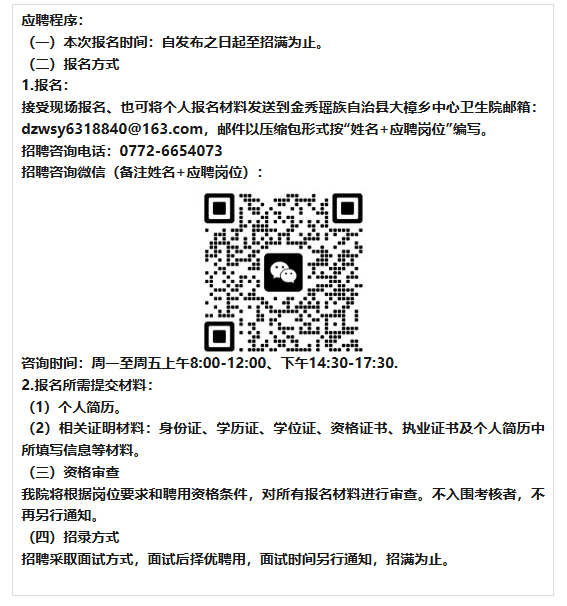 原文標題:金秀瑤族自治縣大樟鄉(xiāng)中心衛(wèi)生院2025年公開招聘人才公告