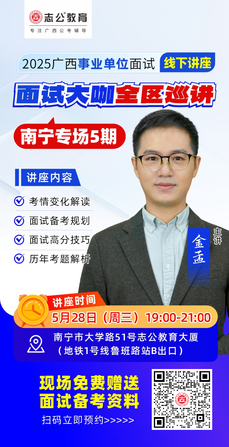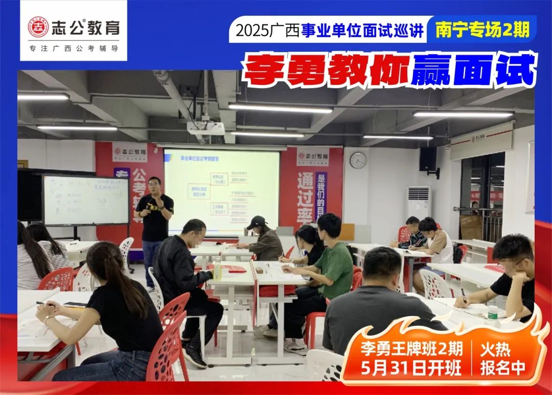 隨著2025廣西事業(yè)單位——李勇教你贏面試【南寧專(zhuān)場(chǎng)2期】線下巡講落幕,這場(chǎng)"面試攻堅(jiān)戰(zhàn)",不僅點(diǎn)燃了備考熱情,更讓志公教育"幫助人才實(shí)現(xiàn)更高質(zhì)量的就業(yè)"的使命,在八桂大地結(jié)出更多碩果。