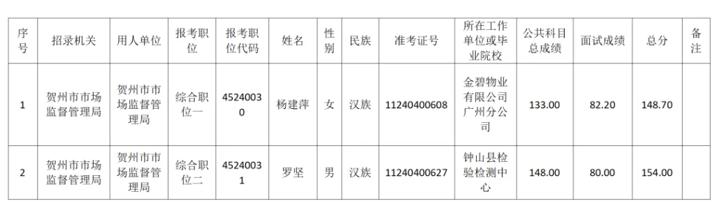 2 賀州市國資委2025年公開遴選公務(wù)員擬任用人員名單