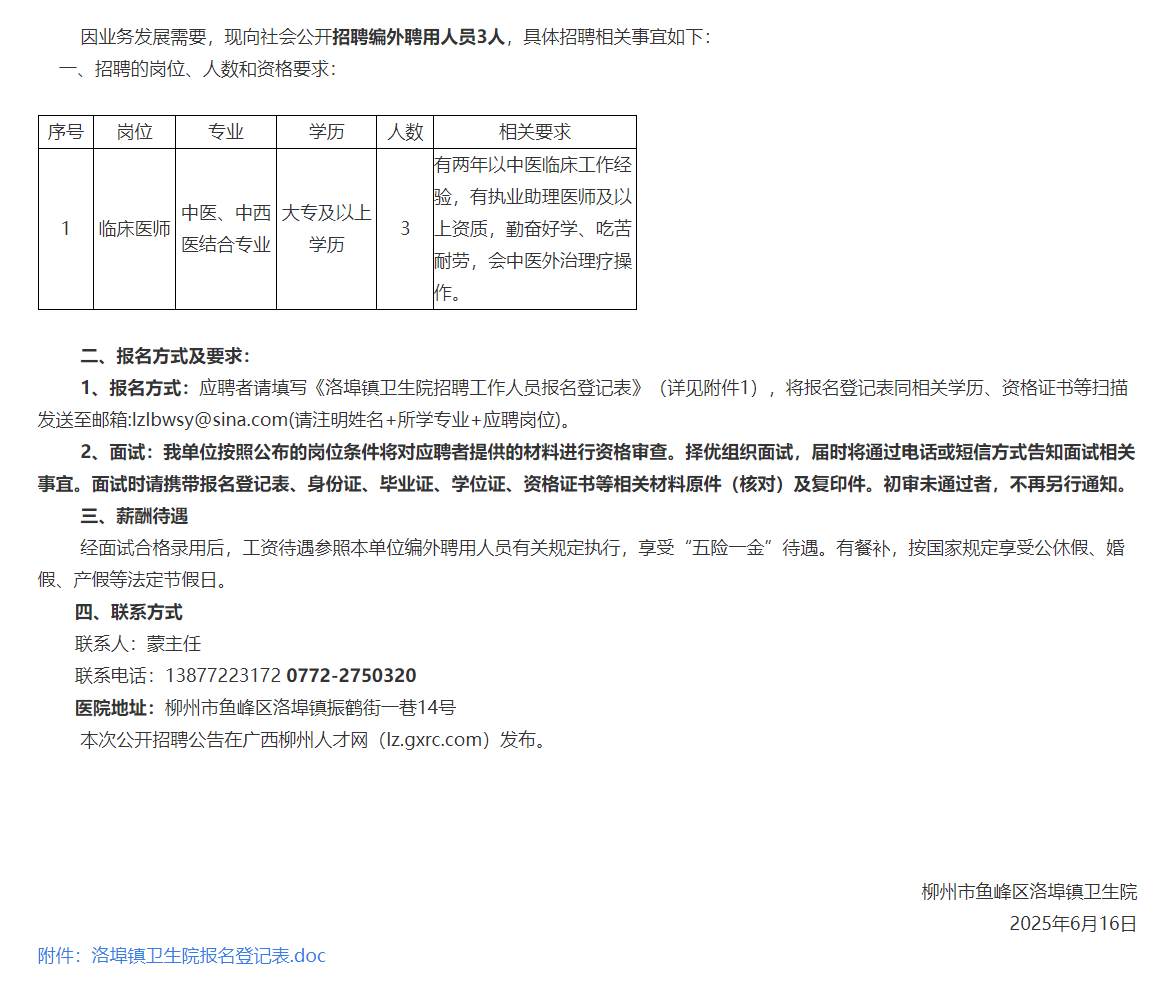 柳州市魚峰區(qū)洛埠鎮(zhèn)衛(wèi)生院招聘3人