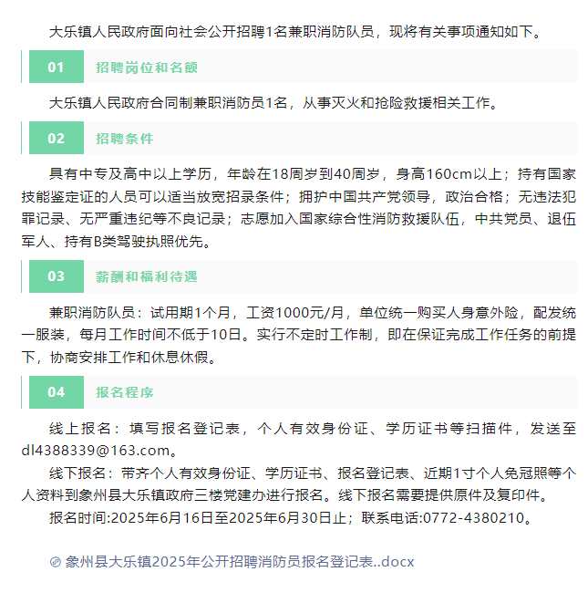 2025年來(lái)賓大樂鎮(zhèn)招聘消防隊(duì)員1人