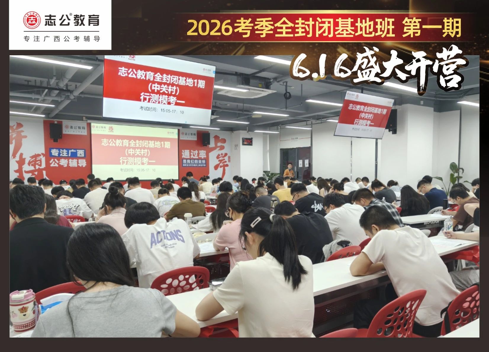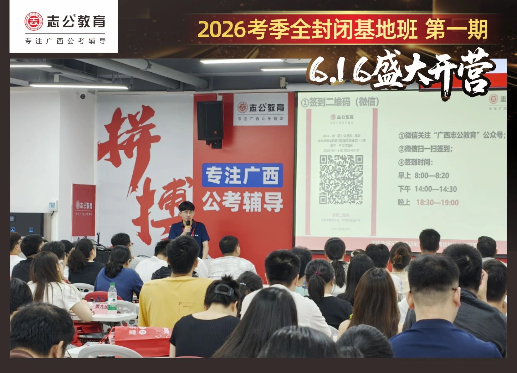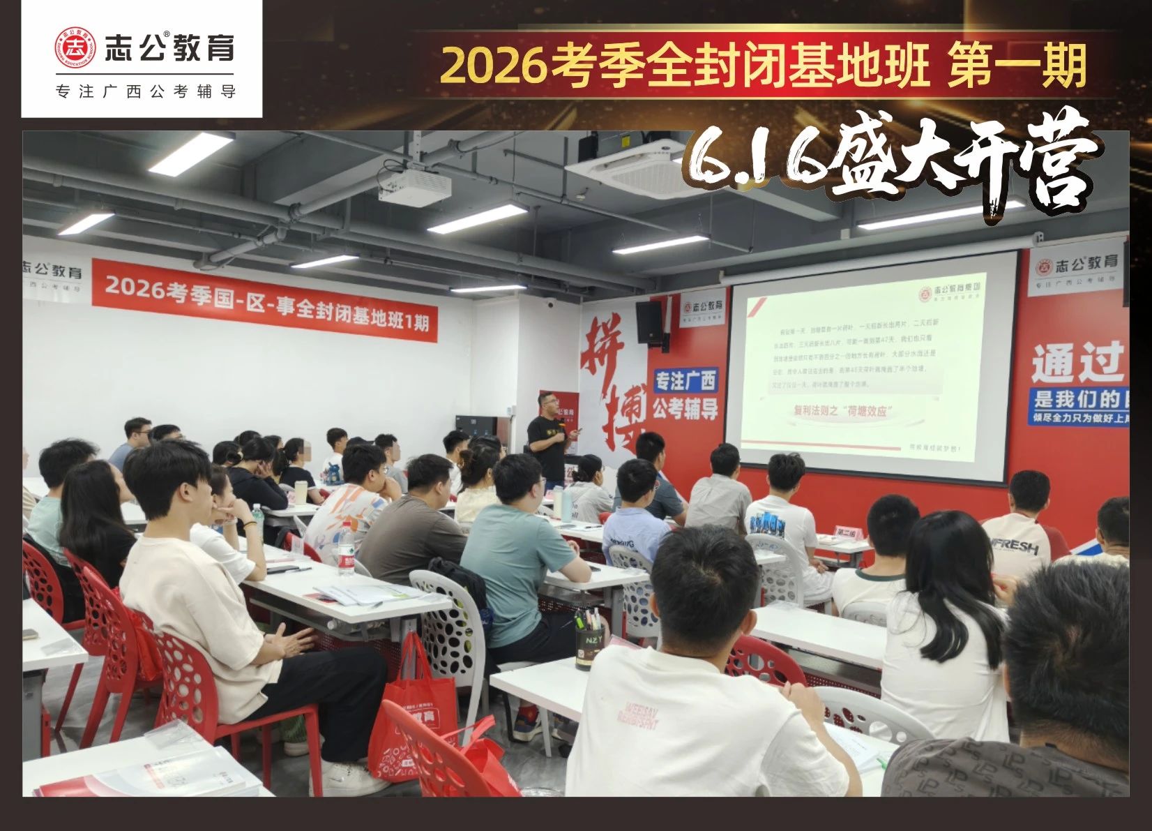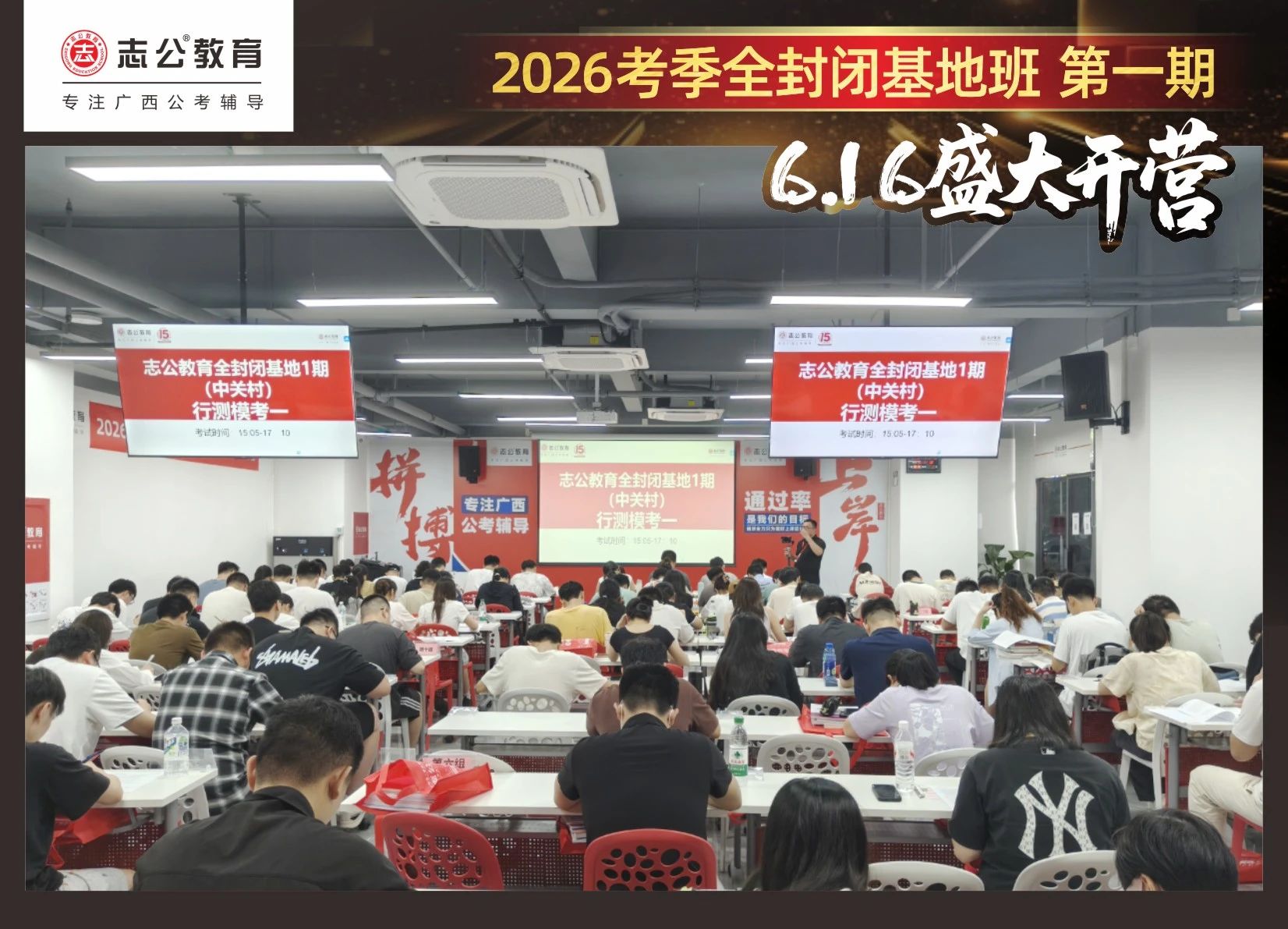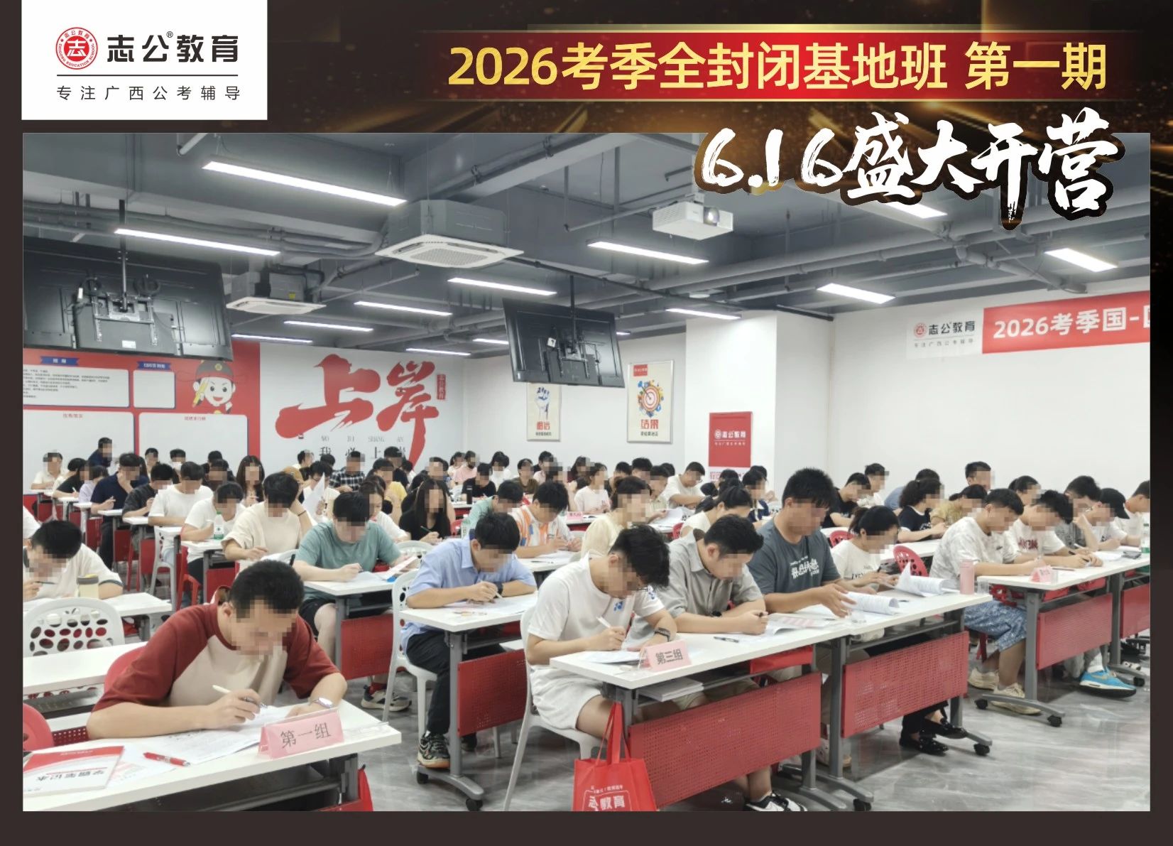 大家稍作休息之后,就是咱們期待已久的開班典禮啦!學(xué)員們在班主任的引導(dǎo)下分組就坐。大家目光灼灼,熱情高漲,迫不及待想要開啟學(xué)習(xí)模式。看這座無虛席的盛況,志公26考季全封閉基地班第1期課程實力名不虛傳,各位學(xué)員用飽滿的熱情和積極的態(tài)度迎接此次課程的開展,期待大家能夠完成自己的蛻變和成長!