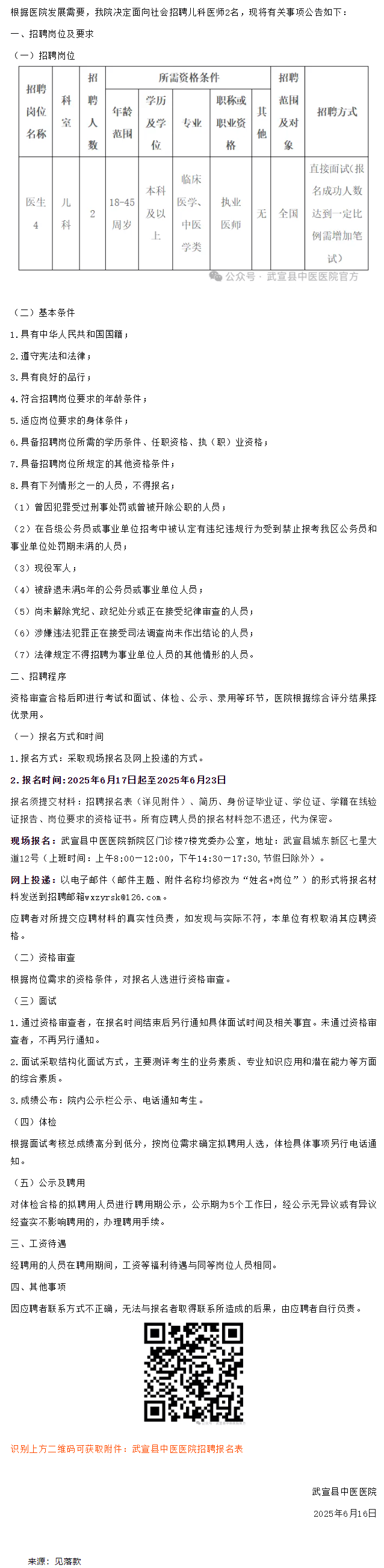 原文標(biāo)題:武宣縣中醫(yī)醫(yī)院2025年公開招聘編外聘用人員公告(第一期)