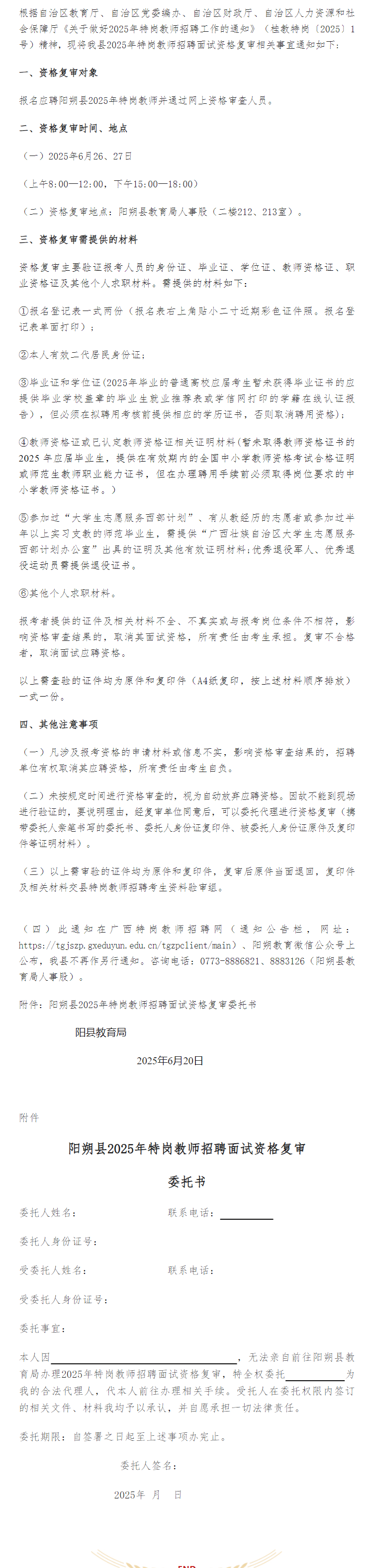 陽朔縣2025年特崗教師招聘面試資格復審通知