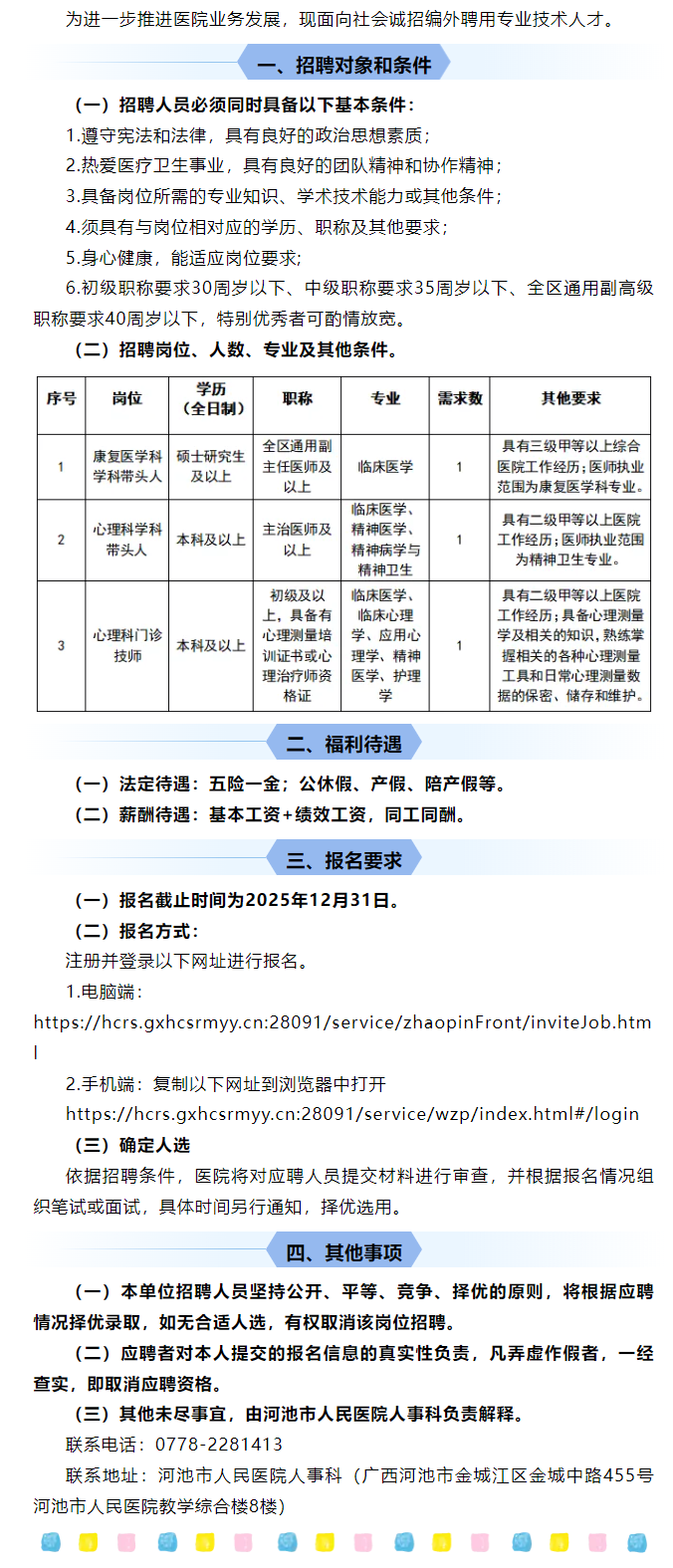 2025年河池市人民醫(yī)院公開(kāi)招聘康復(fù)醫(yī)學(xué)科、心理科專(zhuān)業(yè)技術(shù)人才