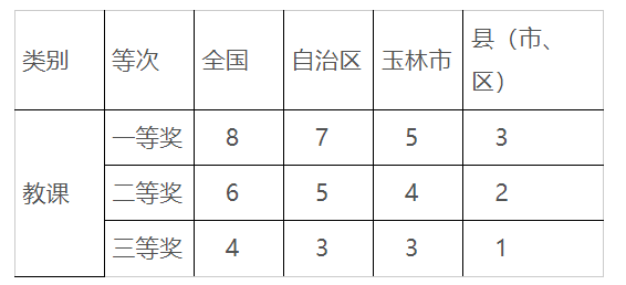 (5)現(xiàn)場(chǎng)教課比賽獲獎(jiǎng):參加教育行政部門或業(yè)務(wù)部門逐級(jí)選拔的縣以上的教課比賽獲得一、二、三等獎(jiǎng)勵(lì)給予計(jì)分。此項(xiàng)最高不超過10分。具體計(jì)分如下: