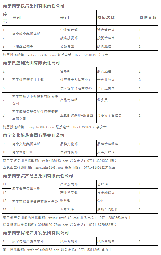 附件1.南寧威寧集團(tuán)及各下屬企業(yè)2025年第三季度招聘崗位及條件