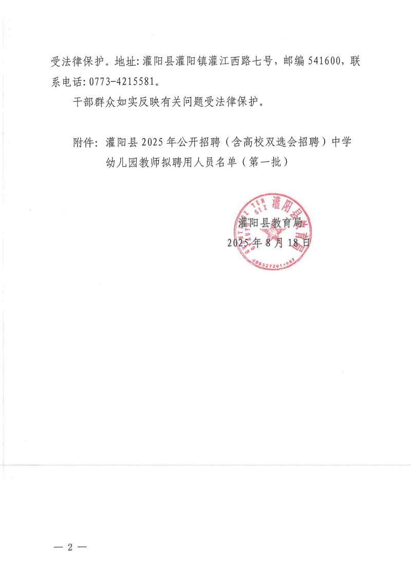 灌陽縣2025年公開招聘(含高校雙選會招聘)中學(xué)幼兒園教師擬聘用人員名單(第一批)公示