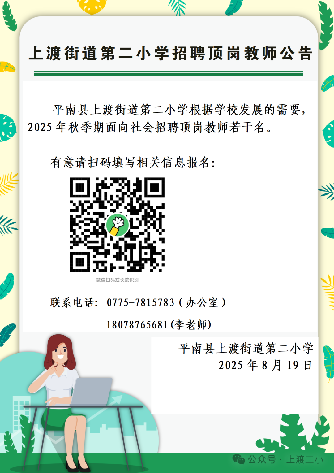 2025年貴港平南上渡街道第二小學(xué)秋季期頂崗教師招聘公告