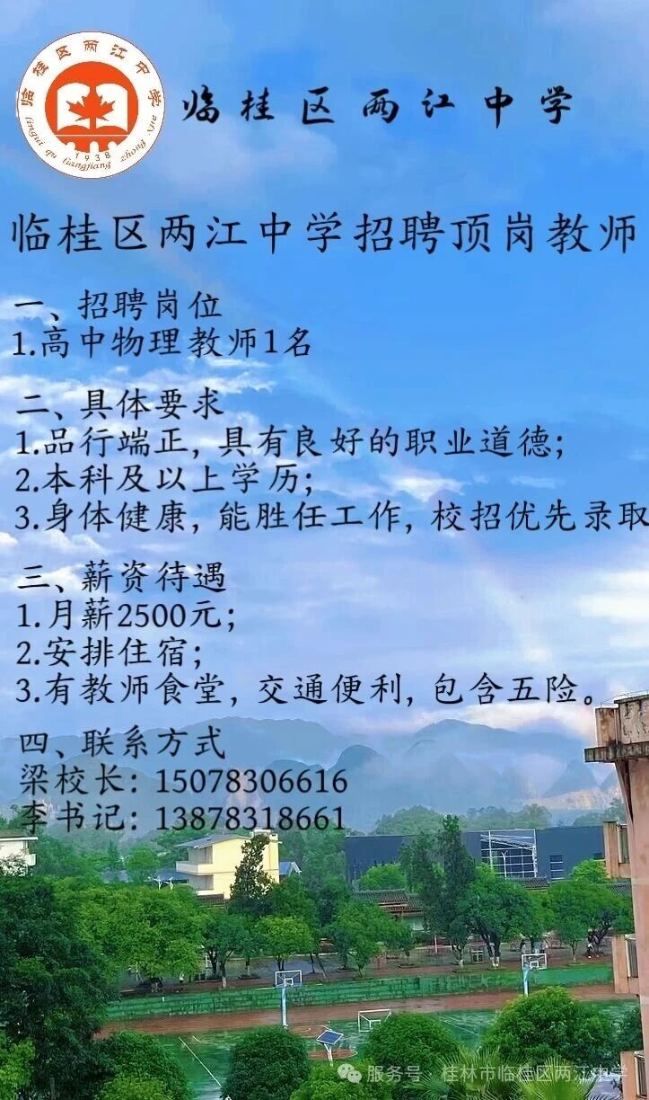 2025年桂林臨桂區(qū)兩江中學招聘頂崗老師1人