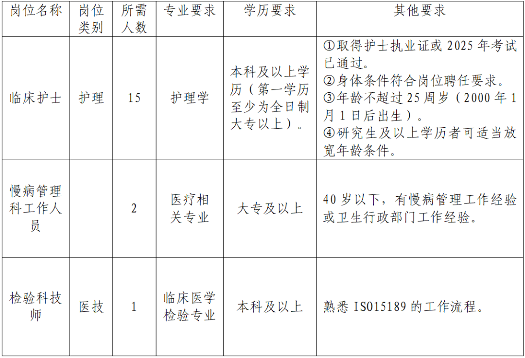(一)報(bào)名。應(yīng)聘者需在2025年9月21日前將個(gè)人電子簡(jiǎn)歷及應(yīng)聘所需佐證材料,包括但不限于畢業(yè)證(第一學(xué)歷和最高學(xué)歷)、學(xué)位證、執(zhí)業(yè)證(考試成績)、職稱證、進(jìn)修結(jié)業(yè)證、??谱o(hù)士培訓(xùn)合格證、執(zhí)業(yè)資格考試成績單等打包發(fā)送至rsk7836669@163.com郵箱,報(bào)名材料以“姓名+專業(yè)+衛(wèi)技招聘”名字命名。