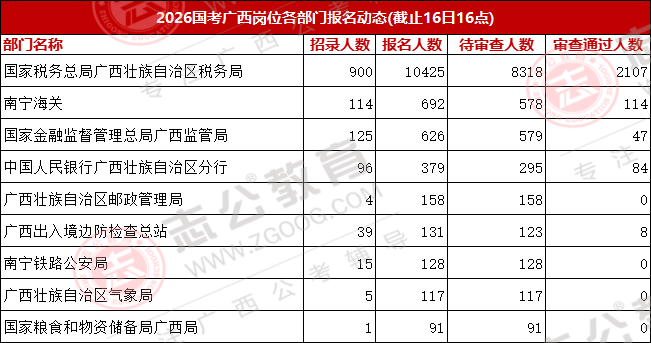廣西地區(qū)報(bào)名人數(shù)前十大部門情況匯總