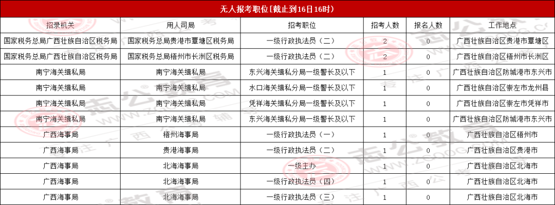 考生們注意!截至10月16日16時(shí),2026國考(廣西)地區(qū)還有71個(gè)無人報(bào)考,占全部748個(gè)職位的9.49%。想避開激烈競(jìng)爭(zhēng)的話,不妨結(jié)合自己的條件,多看看這些冷門崗位~