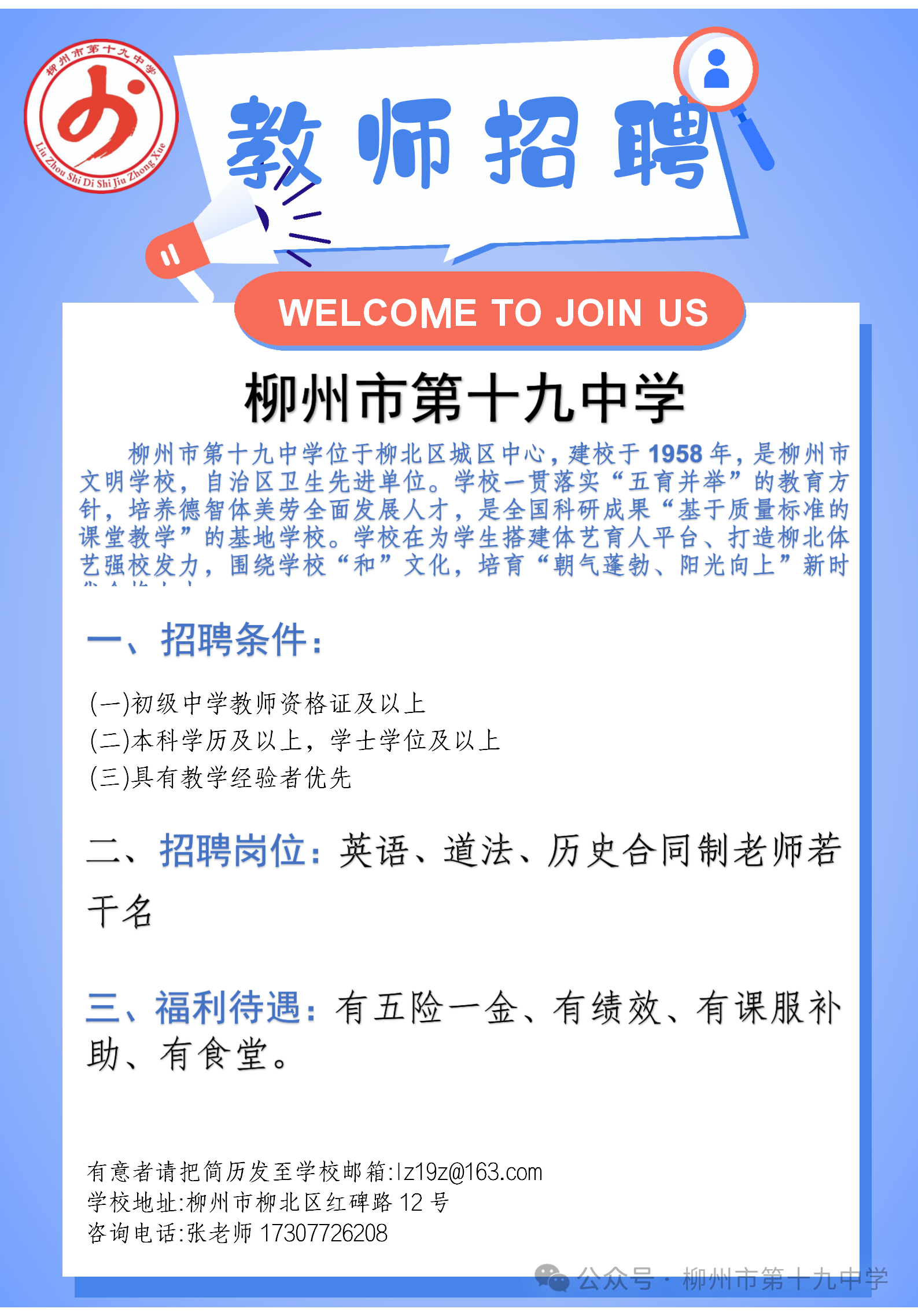 2025年柳州市第十九中學(xué)合同制教師招聘若干人