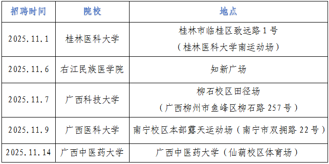 三、廣西各醫(yī)學(xué)院校雙選會舉辦時間、地點(diǎn)