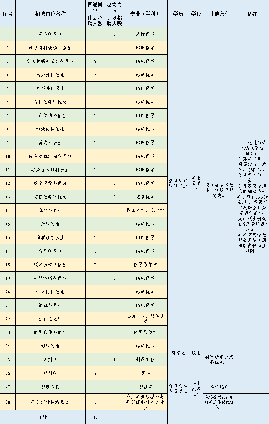 2.具有規(guī)培合格證的醫(yī)生依照國衛(wèi)辦科教發(fā)〔2021〕18號文件,落實“兩個同等對待”政策,即“面向社會招收的普通高校應屆畢業(yè)生培訓對象培訓合格當年在醫(yī)療衛(wèi)生機構就業(yè)的,在招聘、派遣、落戶等方面,按當年應屆畢業(yè)生同等對待。對經(jīng)住培合格的本科學歷臨床醫(yī)師,在人員招聘、職稱晉升、崗位聘用、薪酬待遇等方面,與臨床醫(yī)學、中醫(yī)專業(yè)學位碩士研究生同等對待”。普通崗位規(guī)培醫(yī)師給予一年住房補貼500元/月,急需崗位規(guī)培醫(yī)師安家費稅前4萬元,急需崗位醫(yī)師必須注冊相應崗位執(zhí)業(yè)范圍。