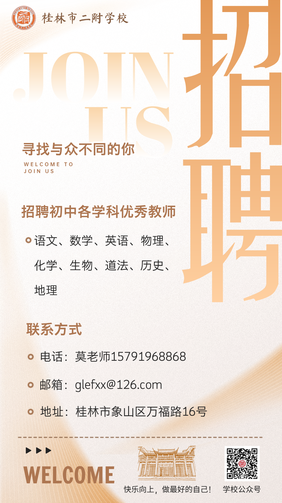 (2)簡歷需附:個(gè)人信息、學(xué)歷證、教師資格證、獲獎(jiǎng)證、教學(xué) / 管理成果證明等掃描件)