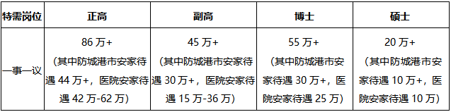 醫(yī)院為符合醫(yī)院及防城港市引進(jìn)政策的人才給予人才激勵:待遇如下(稅前):