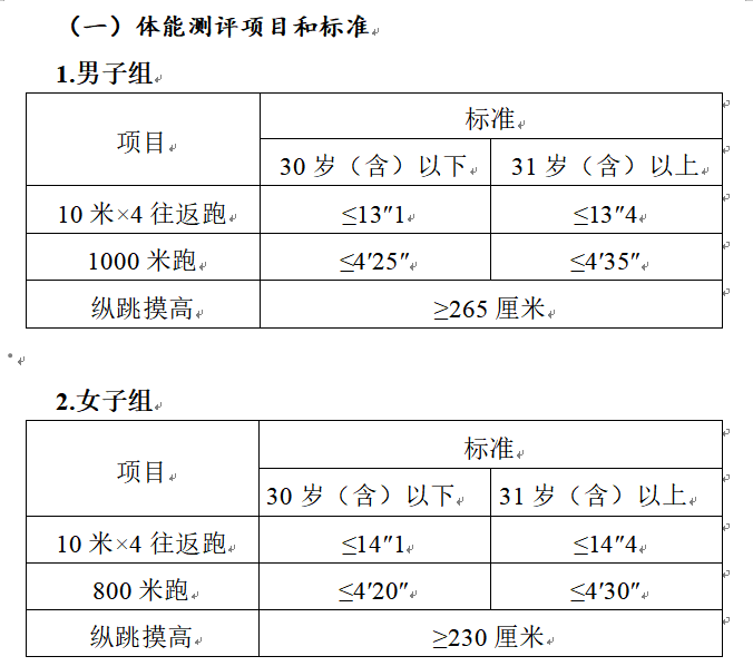 測評結(jié)果分為合格和不合格。一般體能測評三項成績均達(dá)標(biāo)的方為合格,其中具有研究生及以上學(xué)歷報考人員,體能測評三個項目中有任兩項達(dá)標(biāo)的,即視為合格。