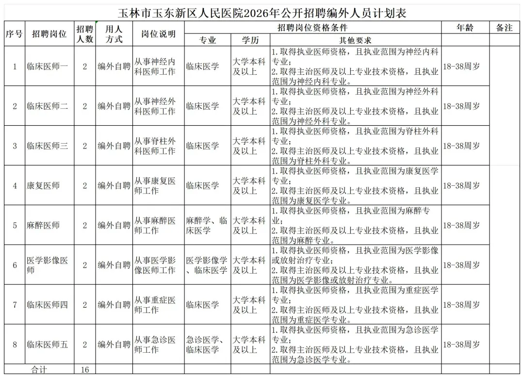 (1)《玉林市玉東新區(qū)人民醫(yī)院2026年公開招聘編外工作人員報(bào)名登記表》(附件),所填寫信息必須真實(shí)無誤,凡弄虛作假的,一律取消報(bào)名資格;