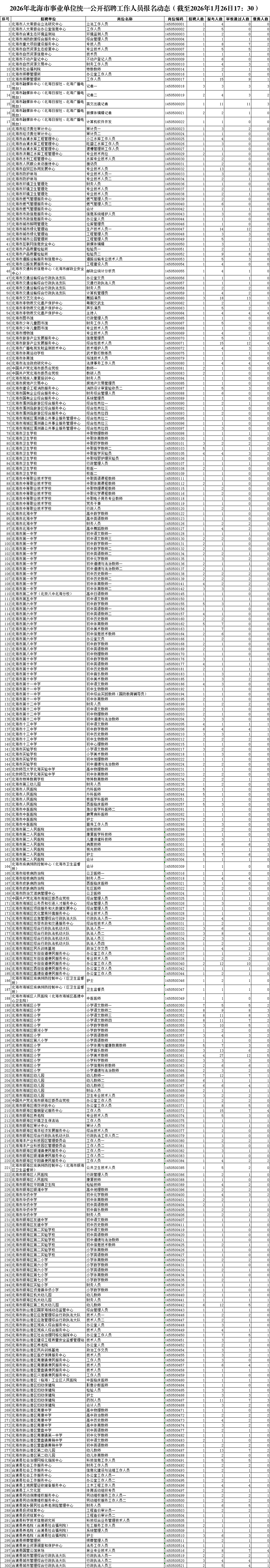 2026年北海市事業(yè)單位統(tǒng)一公開(kāi)招聘工作人員報(bào)名動(dòng)態(tài)(截至2026年1月26日17:30)